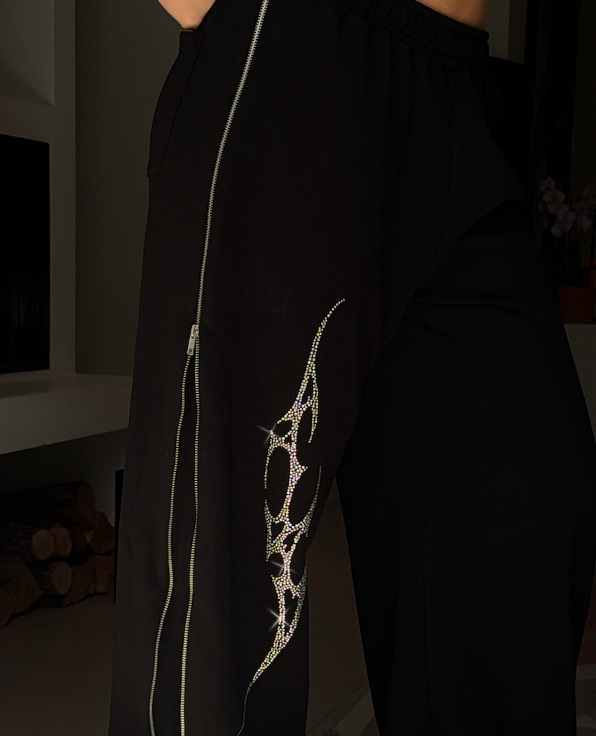 Σετ Ζακέτα & Παντελόνα Stripe SS26 – The Sin Collection | Limited Edition με Στρας & Zip Detail