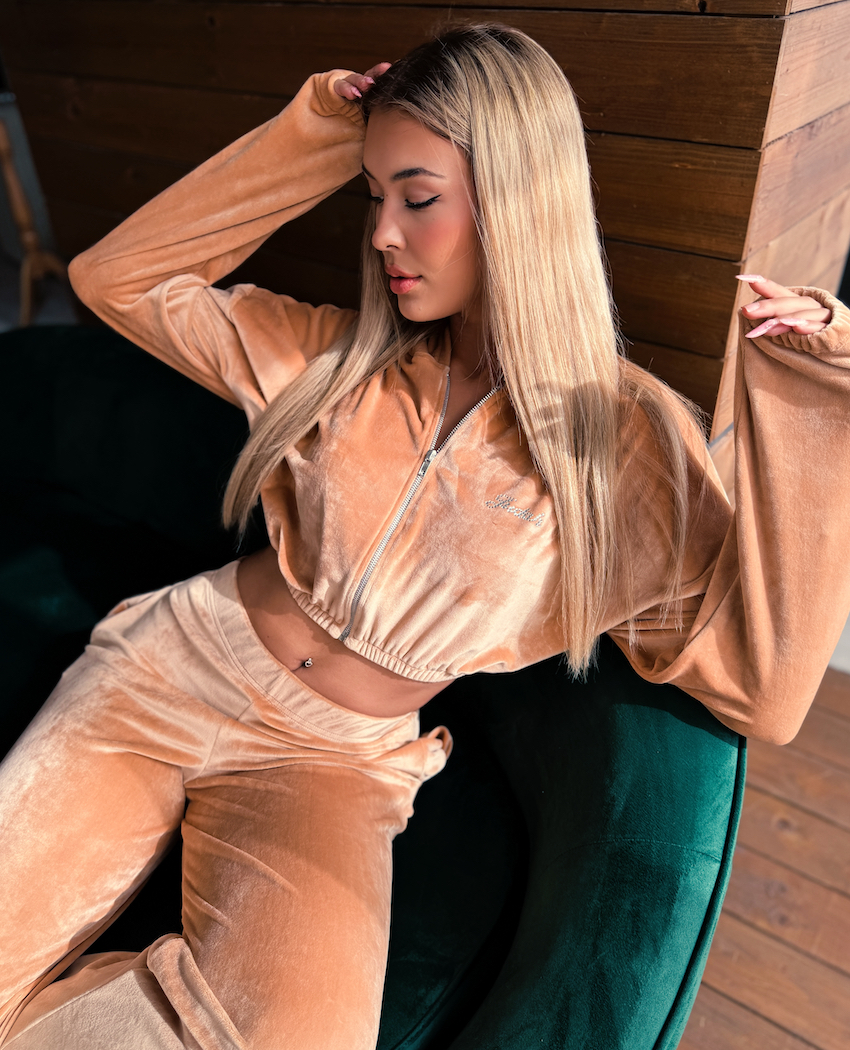 Ένα ευκολοφόρετο σετ βελούδο, ιδανικό για cozy εμφανίσεις, ταξίδια ή stylish καθημερινό ντύσιμο με άποψη.