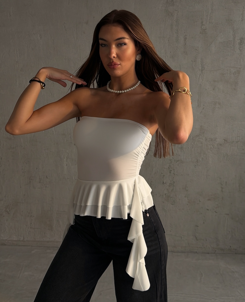 Τοπ Στραπλες Mando SS26 – Διπλό Ύφασμα με Ασύμμετρο Βολάν